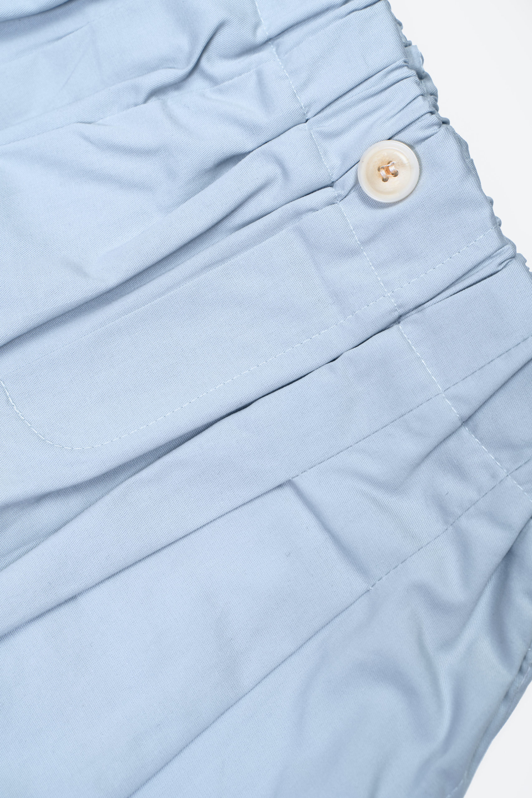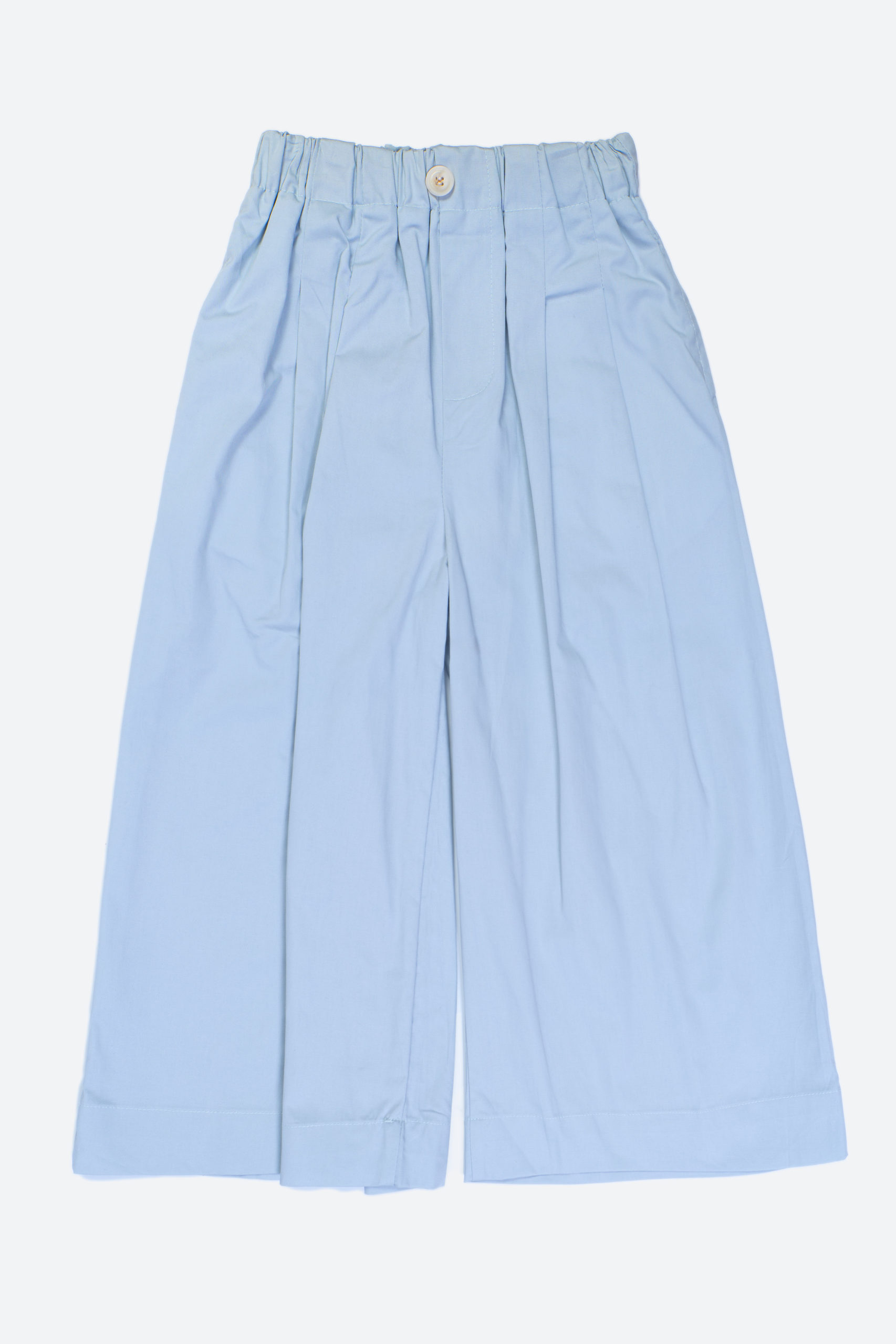 Светло-голубые широкие брюки — стильная и удобная модель.