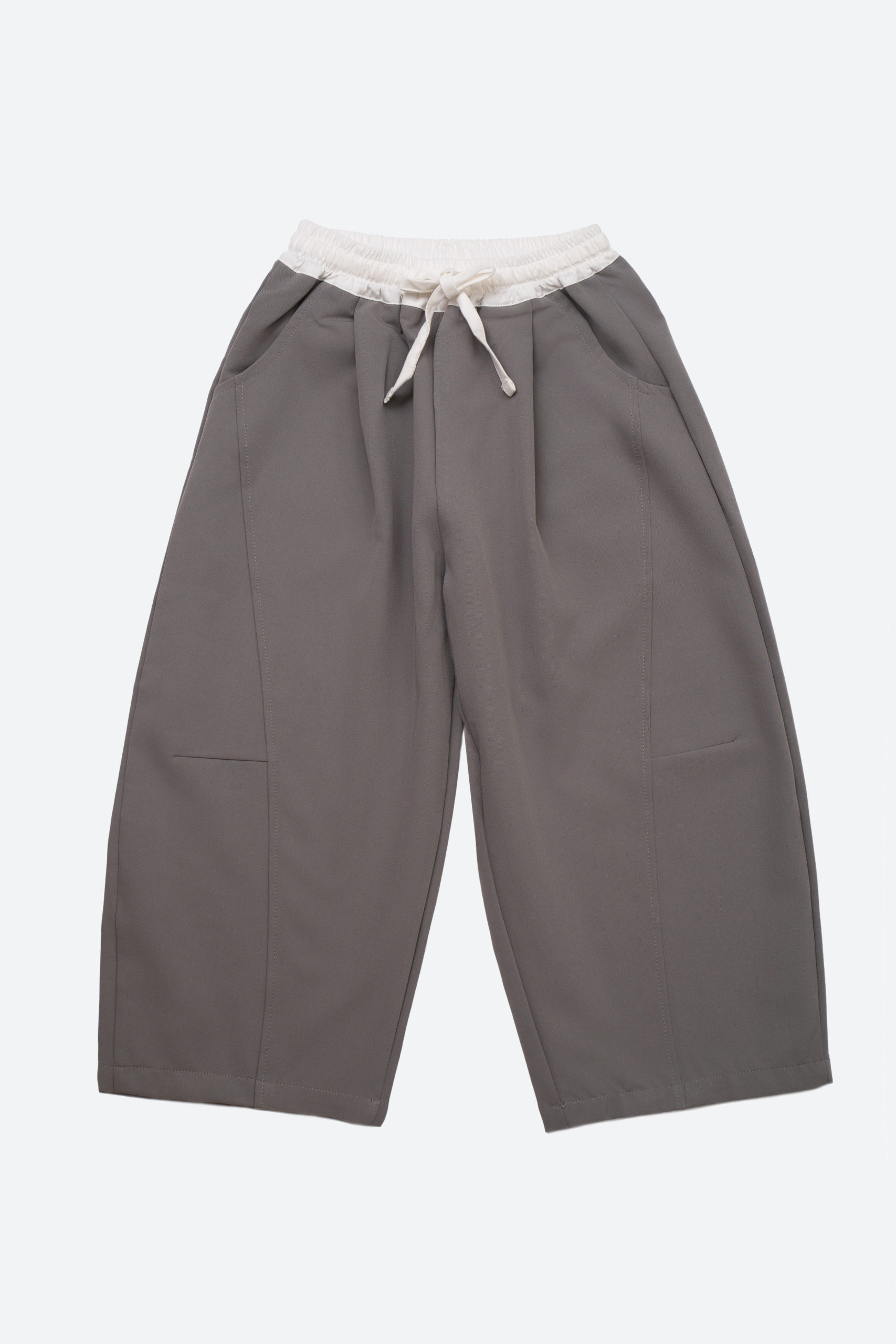 Свободные штаны-кюлоты из мягкой и прочной ткани — отличный выбор для активных детей. Широкий крой не сковывает движения, а эластичный пояс с завязками обеспечивает комфортную посадку. Универсальный графитовый цвет легко сочетается с любым гардеробом.