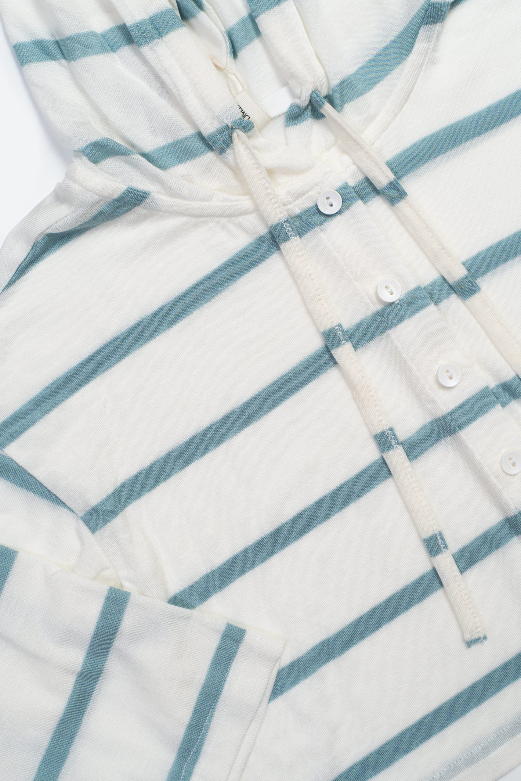 Лёгкая кофта на пуговицах с капюшоном. Модель выполнена из мягкого и дышащего материала.
