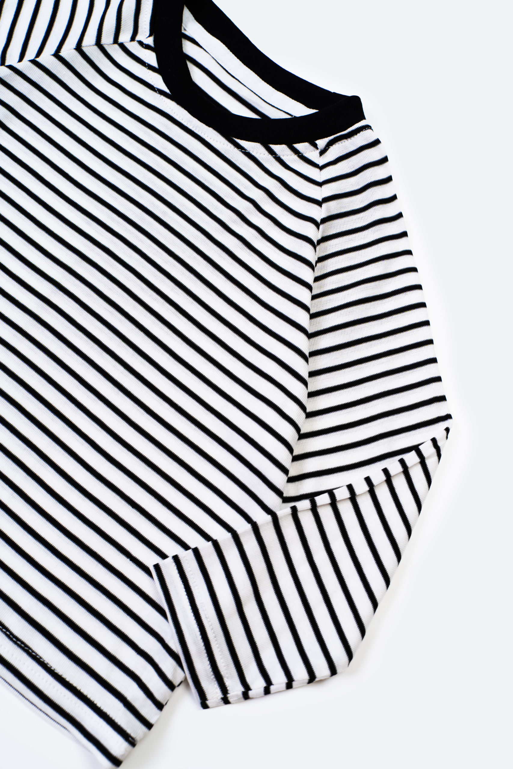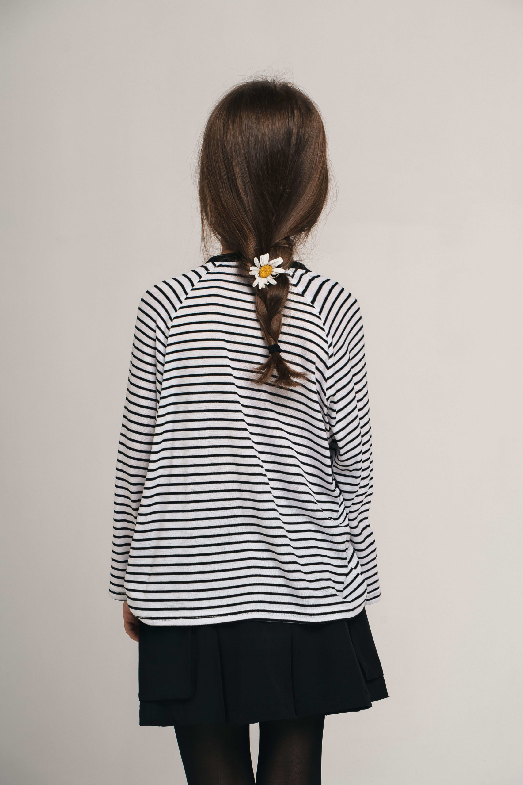 Классическая кофта с длинным рукавом в черно-белую полоску. Выполнена из мягкого и приятного к телу материала.