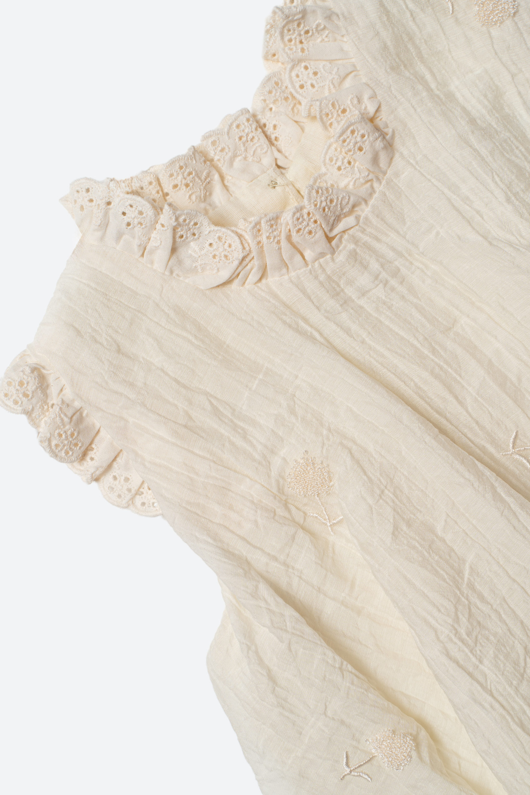 Лёгкое платье для девочек, выполненное из мягкой ткани с эффектом жатки. Украшено нежной вышивкой в виде цветов.