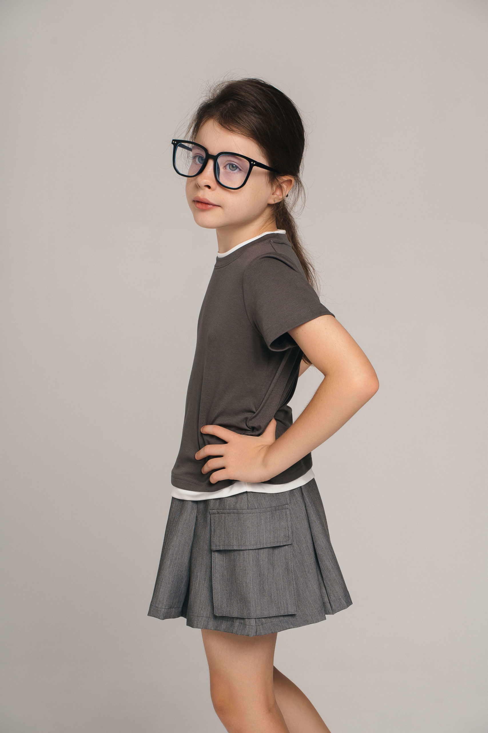 Юбка-шорты базового кроя для школы. Модель выполнена с поясом на резинке, что обеспечивает удобную посадку. Актуальный вариант для повседневной школьной формы.