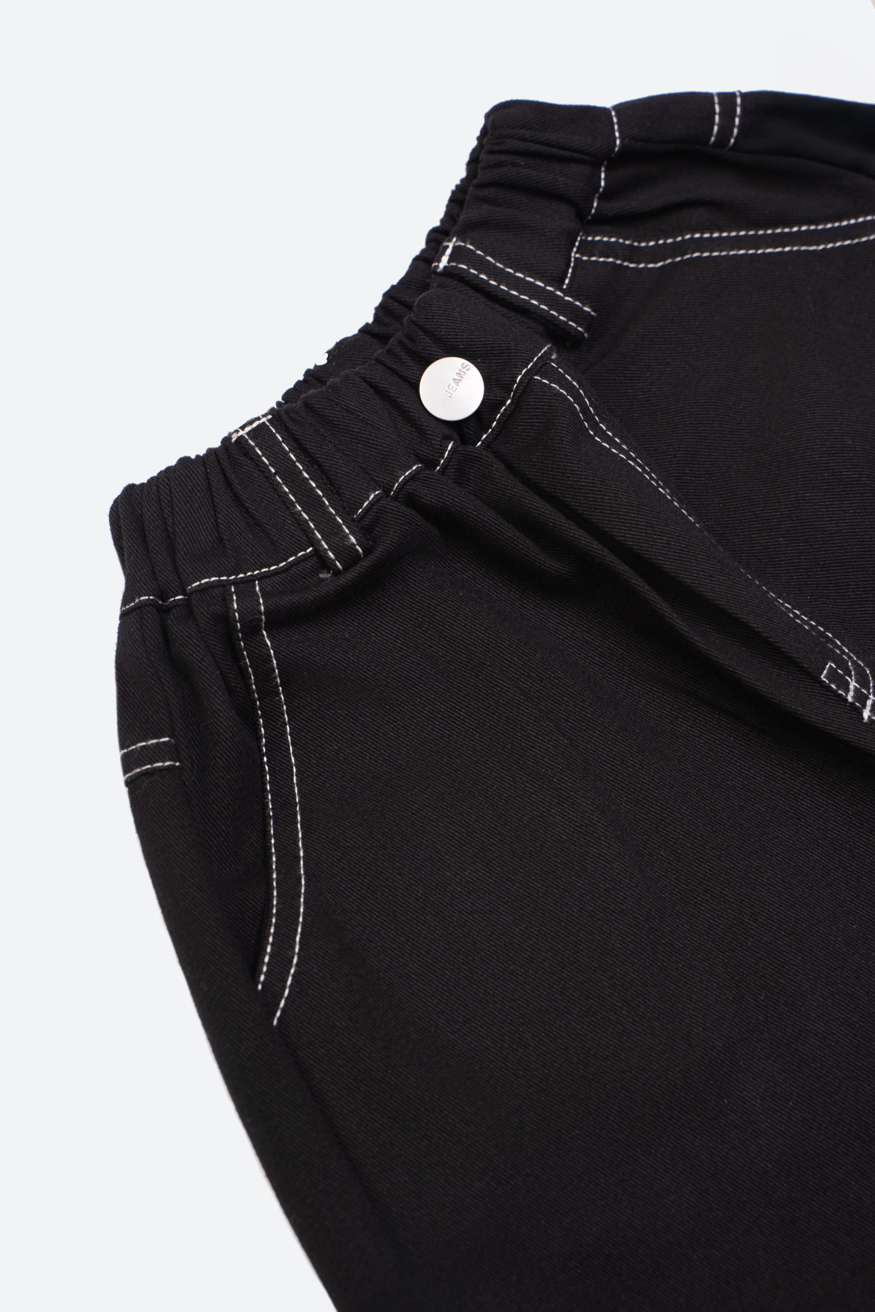 Стильные джинсы черного цвета с белой контрастной строчкой.