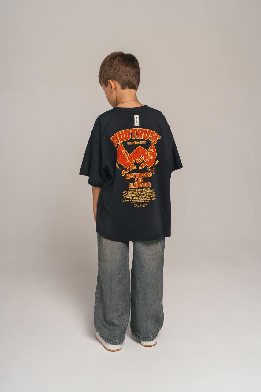 Футболка из плотного хлопка с ярким двусторонним принтом. Удобный свободный крой и эффектный дизайн.