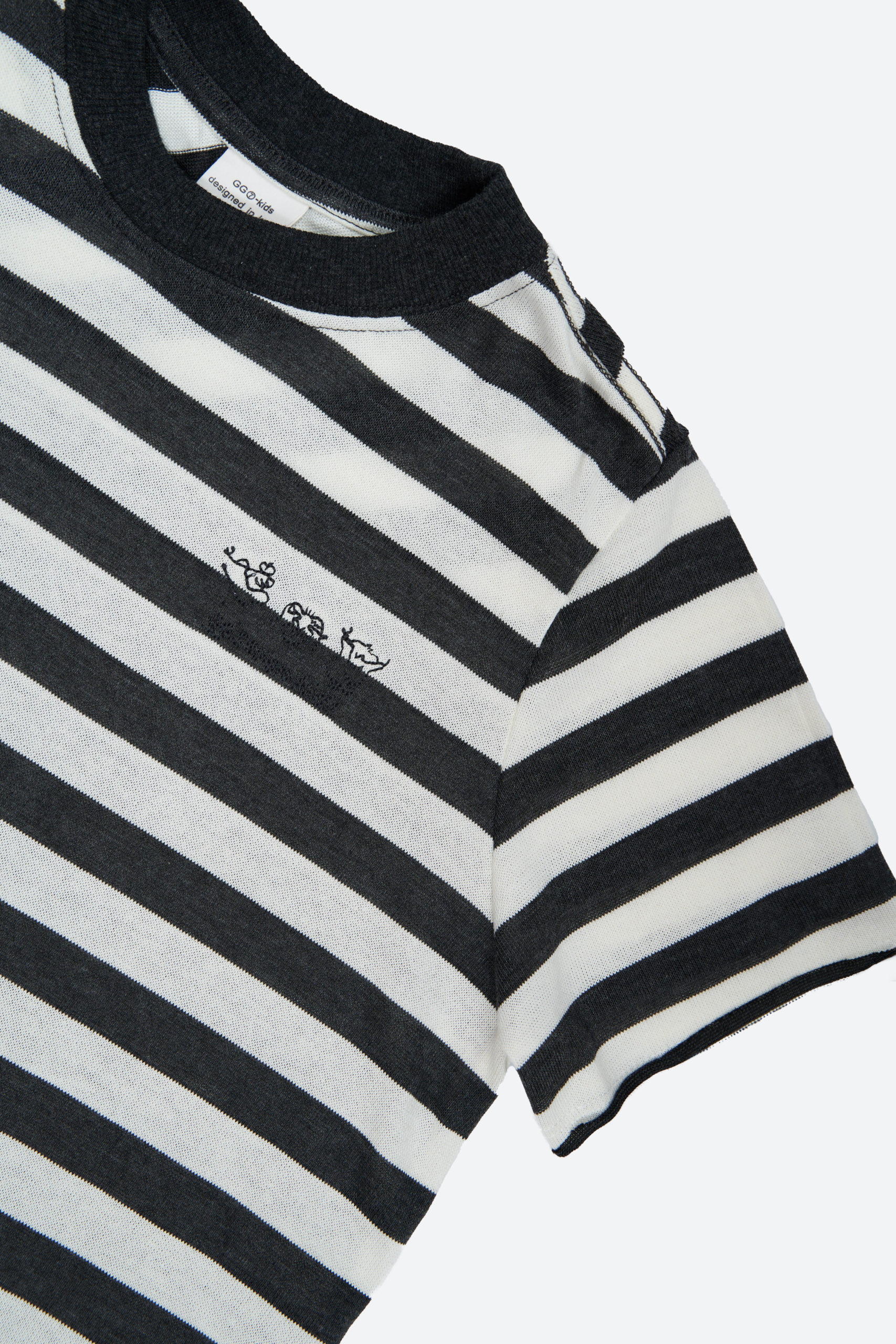 Футболка в чёрно-белую полоску с вышивкой, выполнена из мягкого хлопкового материала.