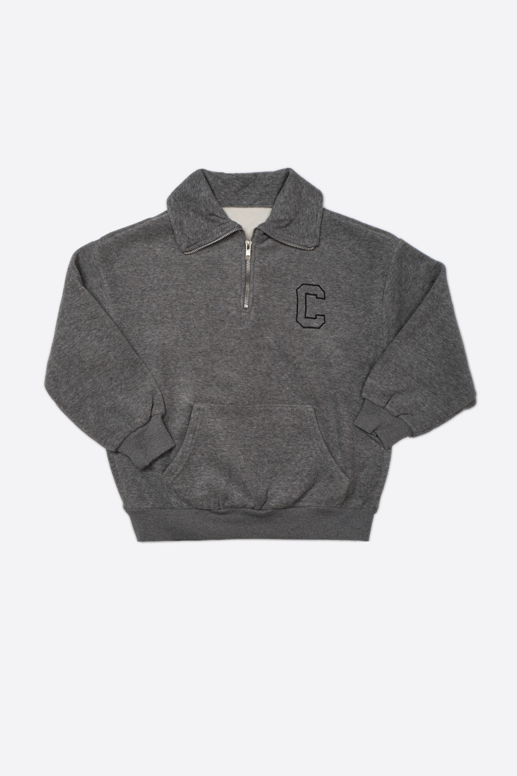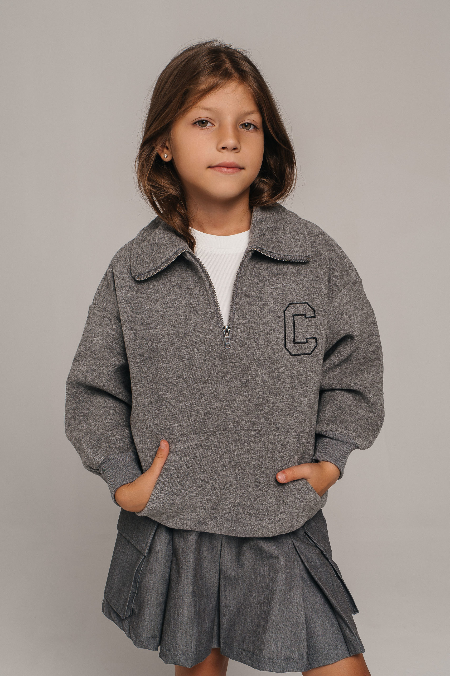 Свитшот на молнии в универсальном сером цвете. Модель выполнена из мягкого и плотного футера.