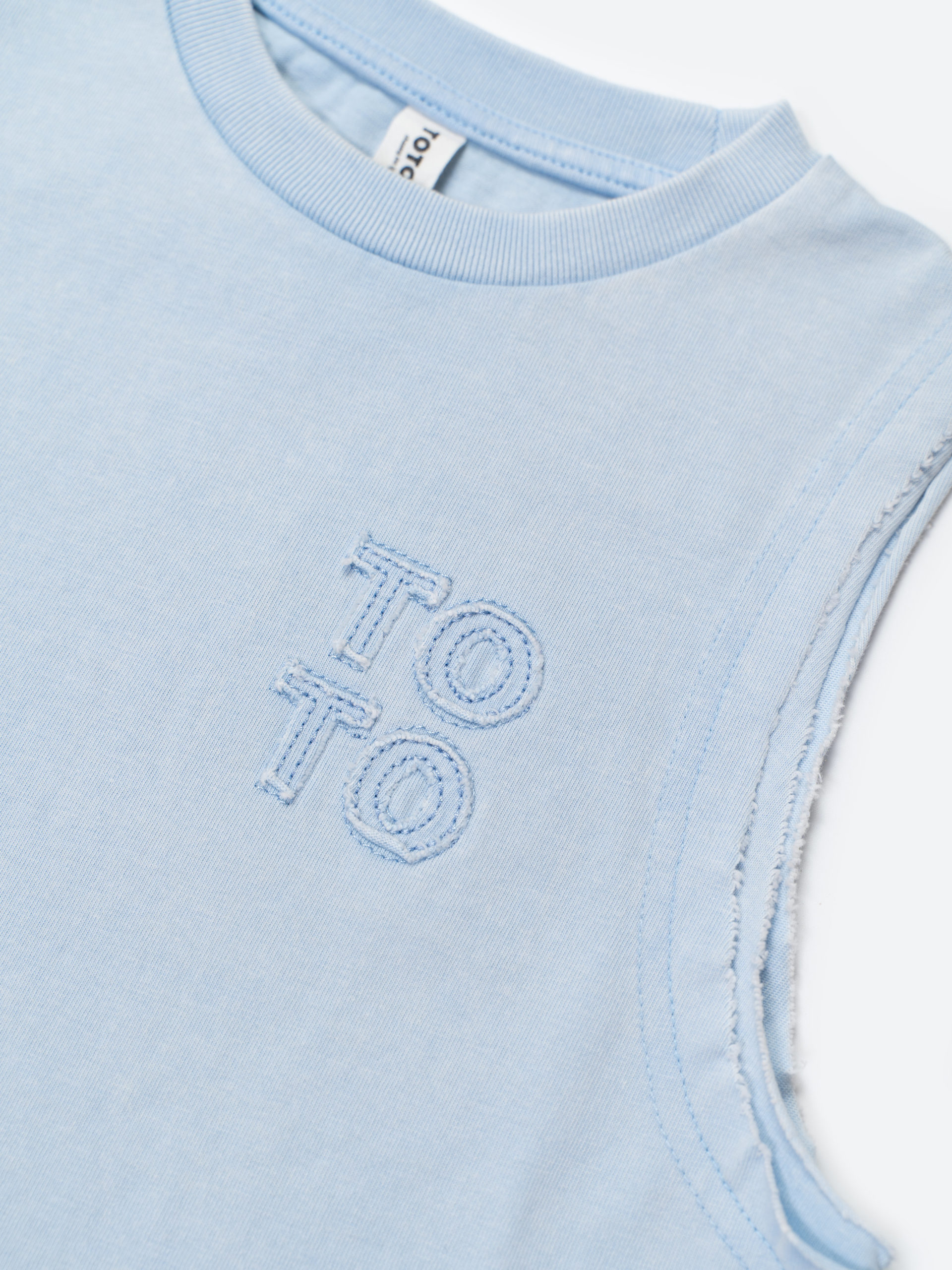 Комплект для детей, включающий майку без рукавов и шорты. Мягкий материал и свободный крой.
