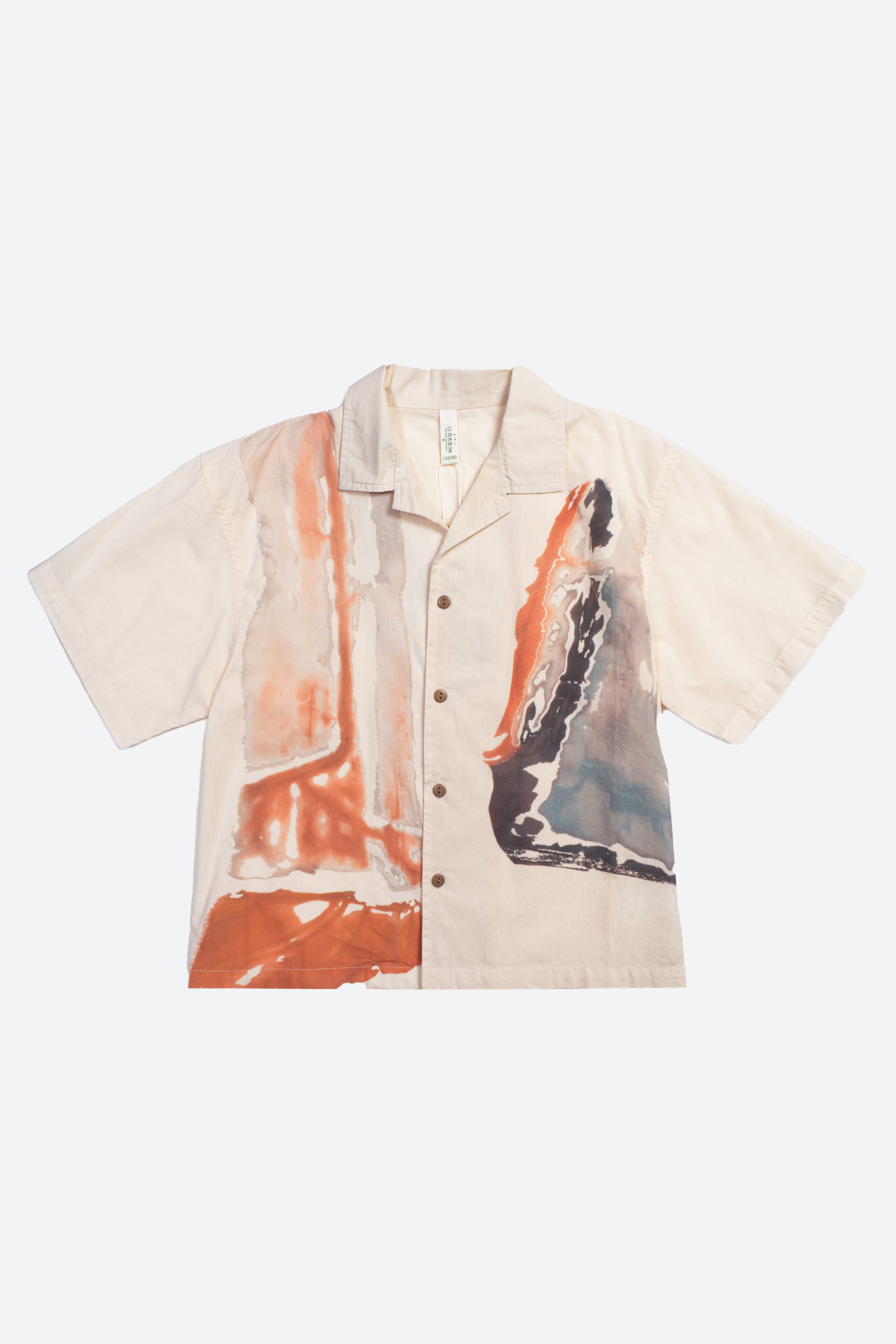 Лёгкая рубашка с коротким рукавом и оригинальным абстрактным принтом. Модель выполнена из натурального хлопка.