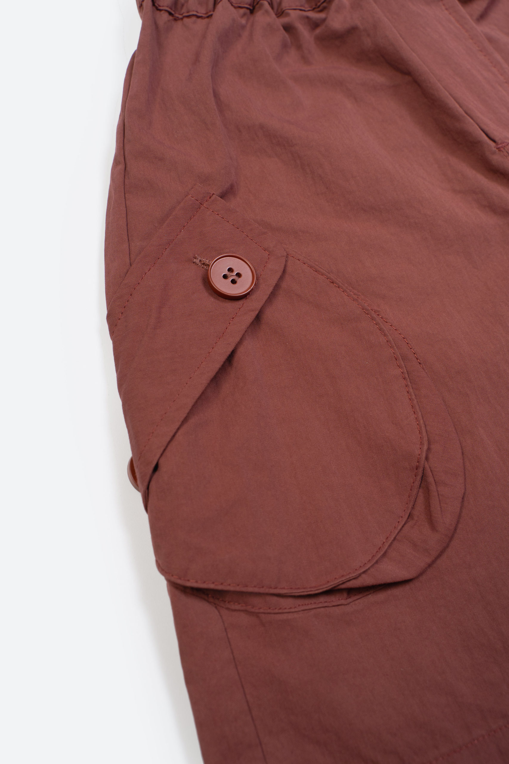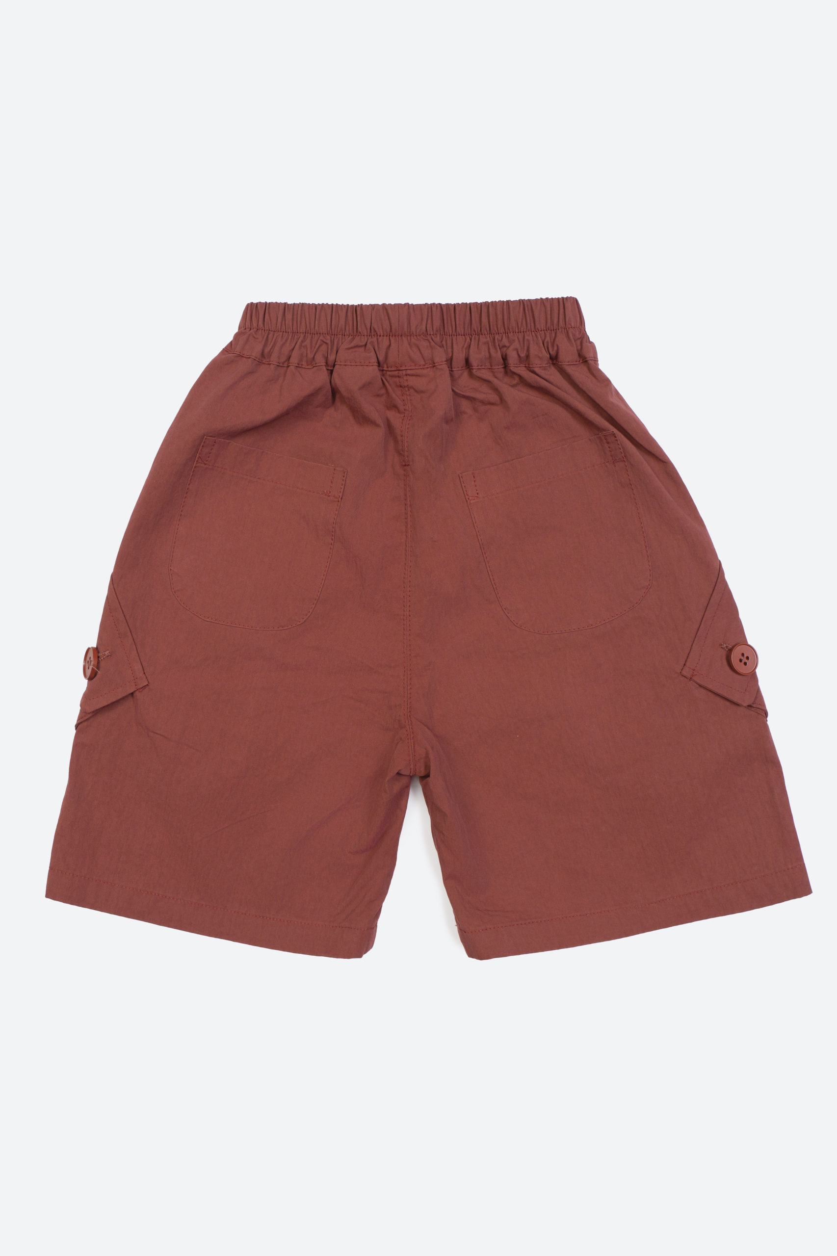 Удобные шорты выполнены из легкой ткани. Модель с эластичным поясом для комфортной посадки и большими накладными карманами с пуговицами по бокам.